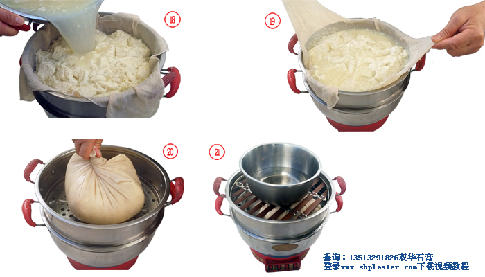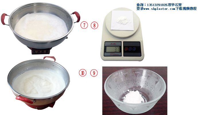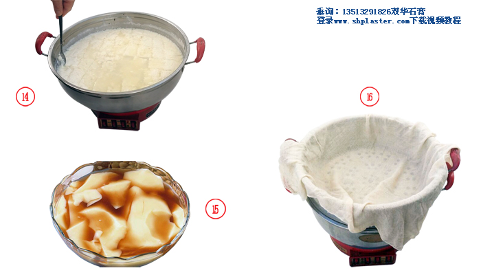 步驟11:把食品級(jí)點(diǎn)豆腐石膏粉和水迅速混合,快速攪拌成石膏漿。